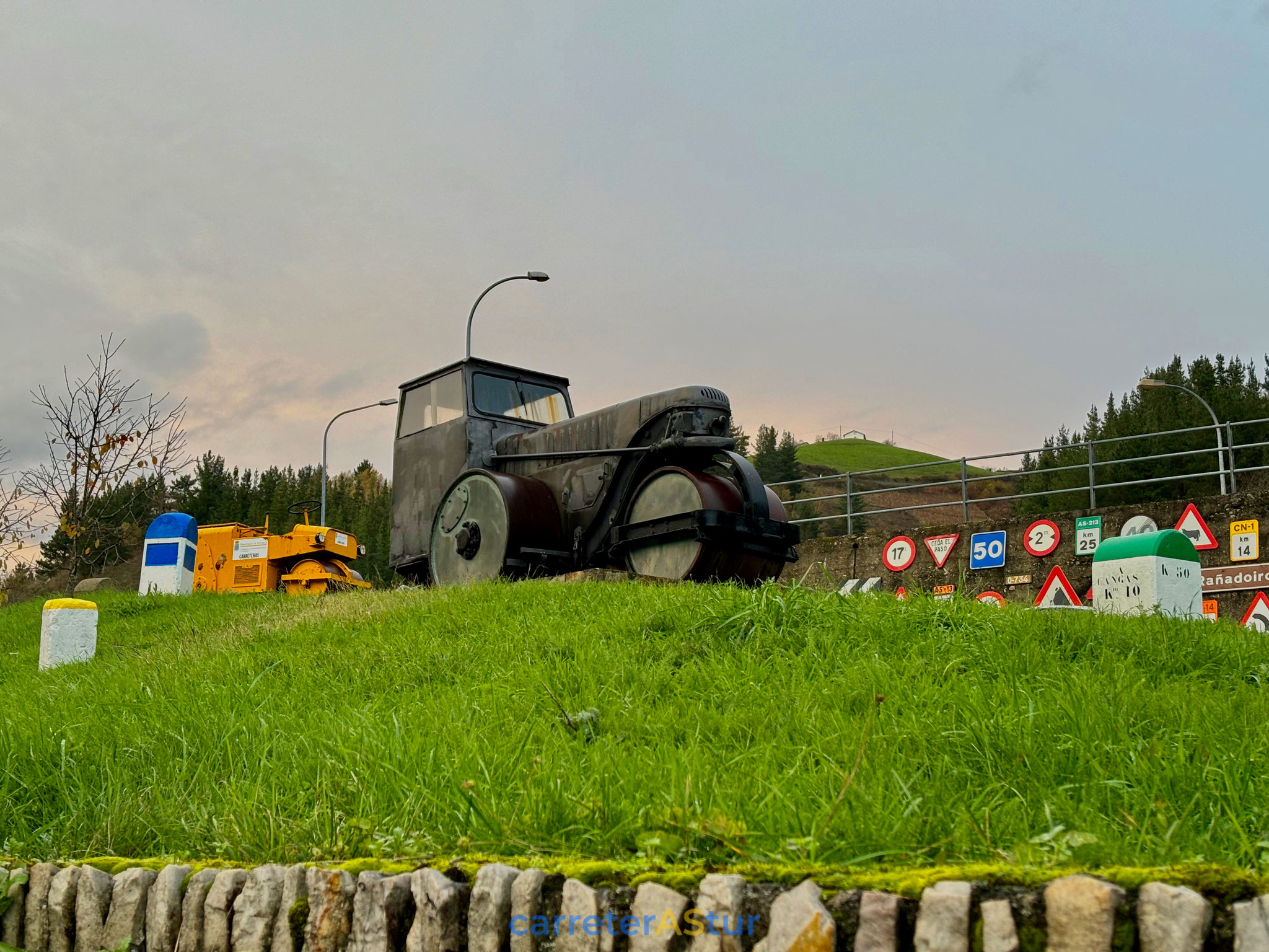 Esta vez no hubo lección de historia en la ruta, esta vez el colofón lo pusimos con una visita al centro de Conservación de carreteras en Cangas del Narcea. De la mano de uno de los pocos camineros que quedan, conocimos el trabajo que hace por conservar la historia carretera. Hitos, maquinaria, señales... No hay en Asturias nada que guarde tanta historia carretera como este parque vigilado por Jorge.