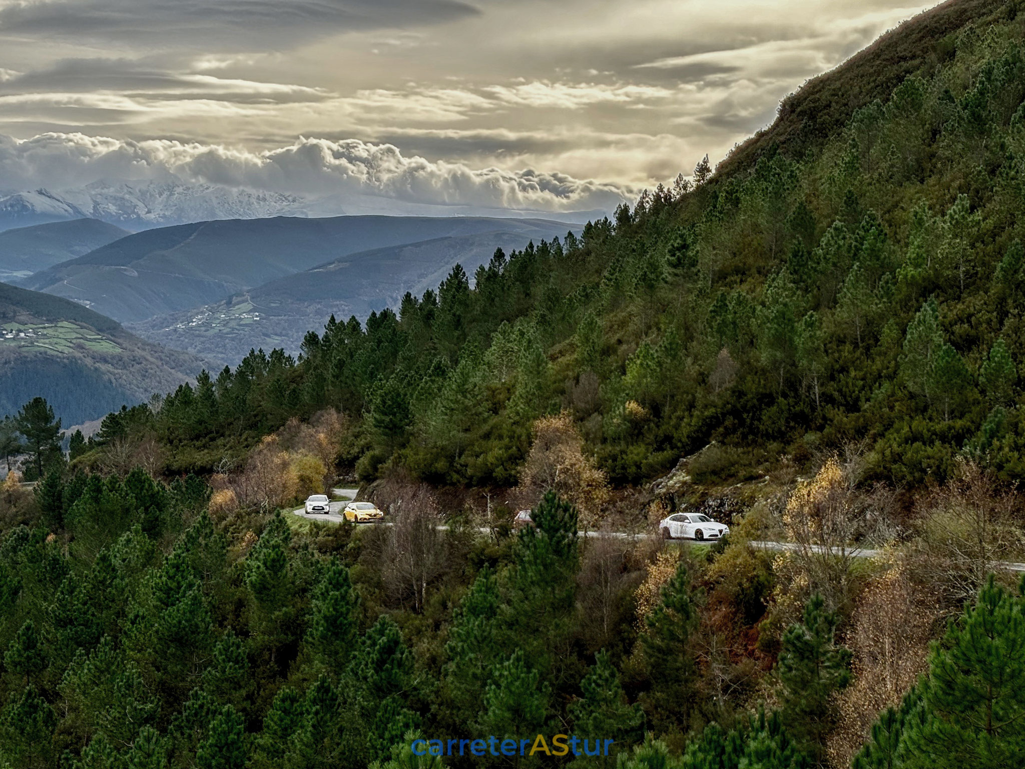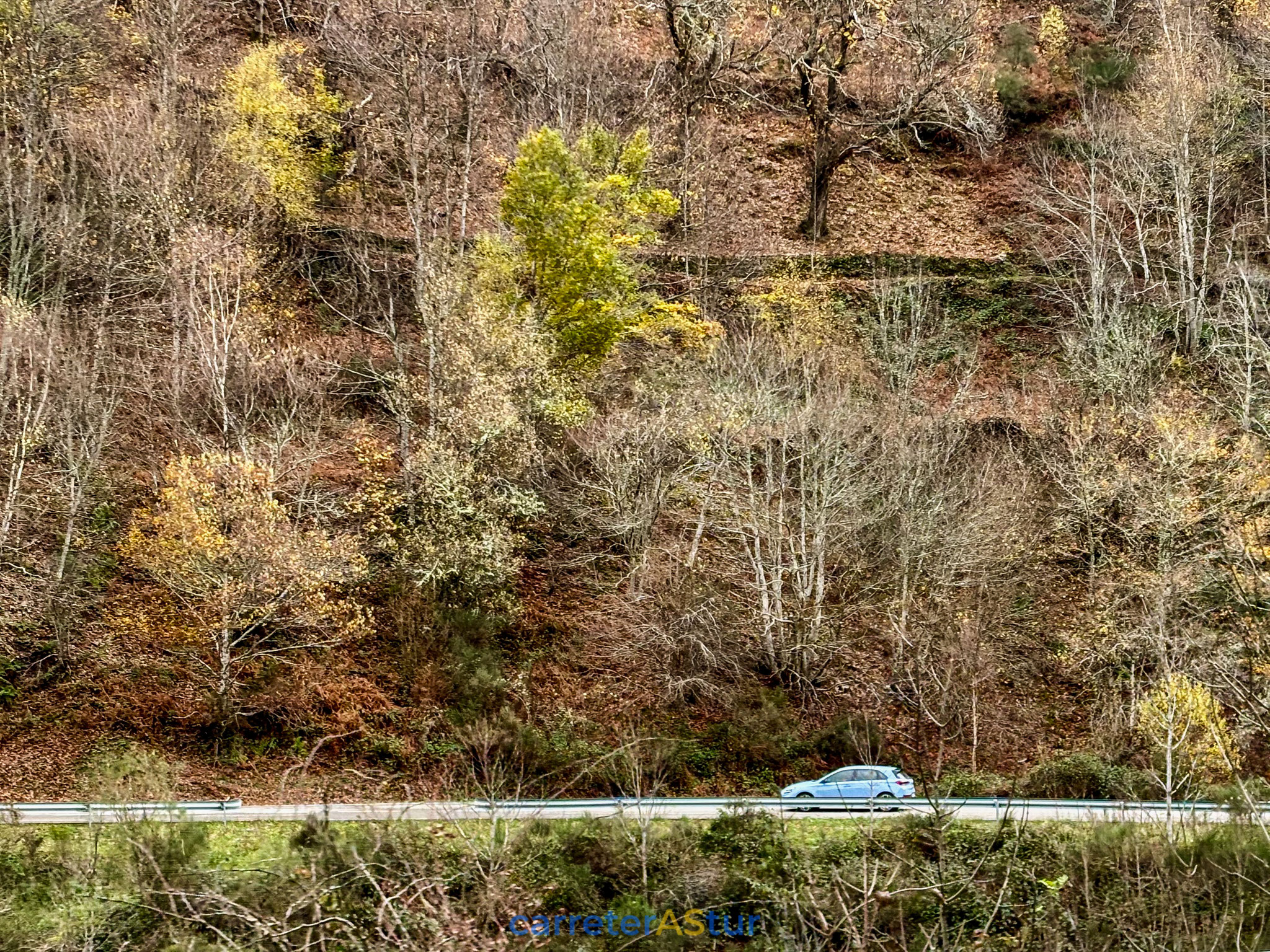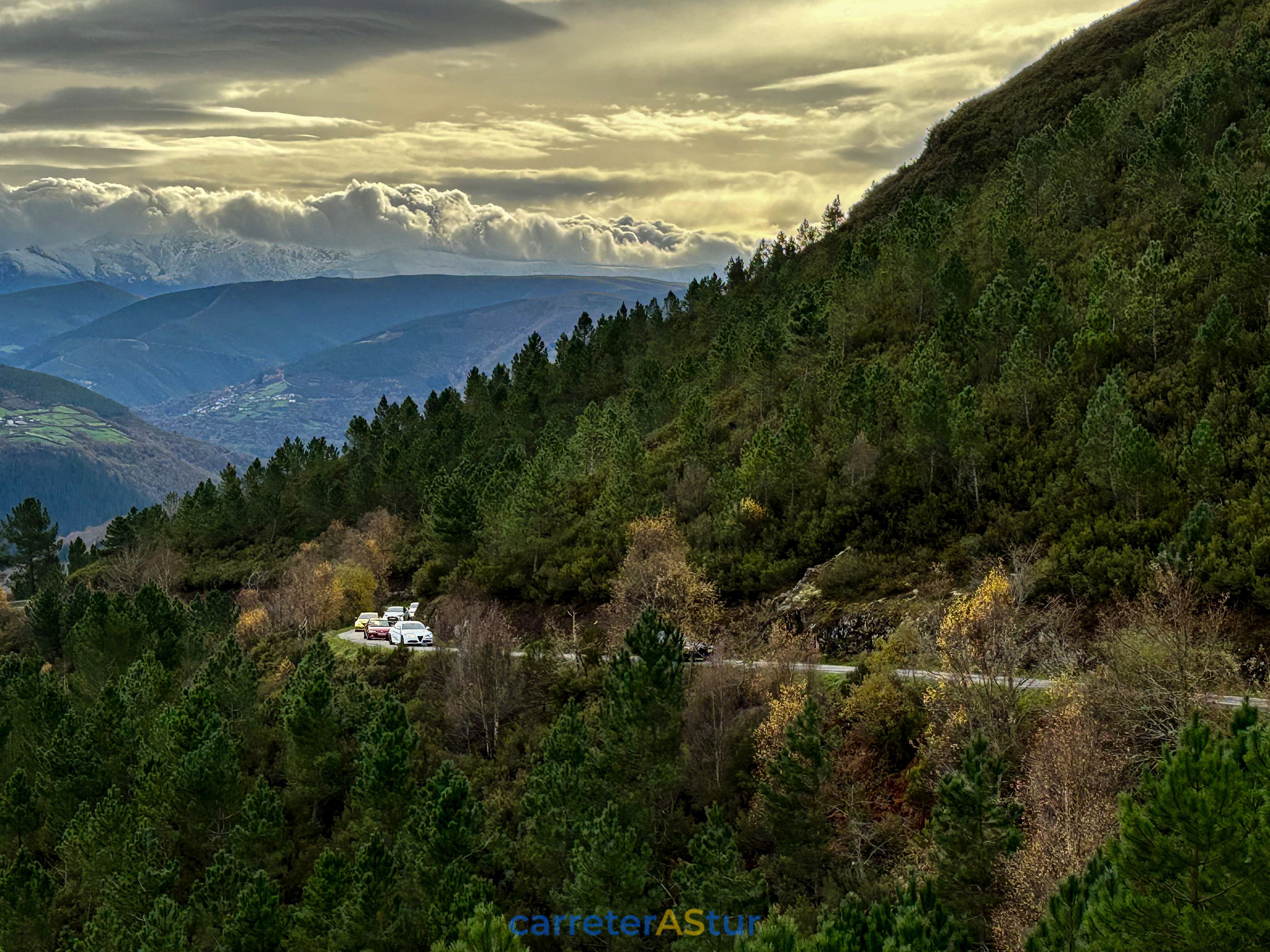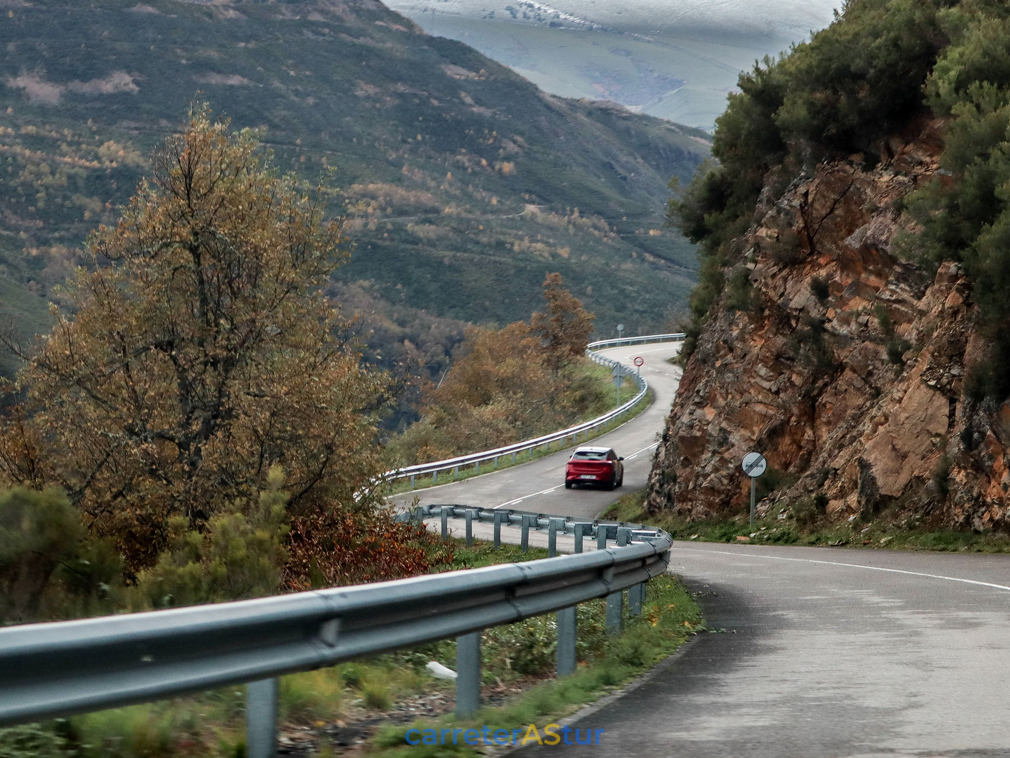 Llega el mensaje que indica el siguiente punto y recorremos el primer tramo que nos lleva a San Antolín de Ibias. Paramos en el Puerto del Connio, para hacer d otos, disfrutar de las vistas... ¡Cruzar Muniellos en otoño es un placer para los sentidos!
