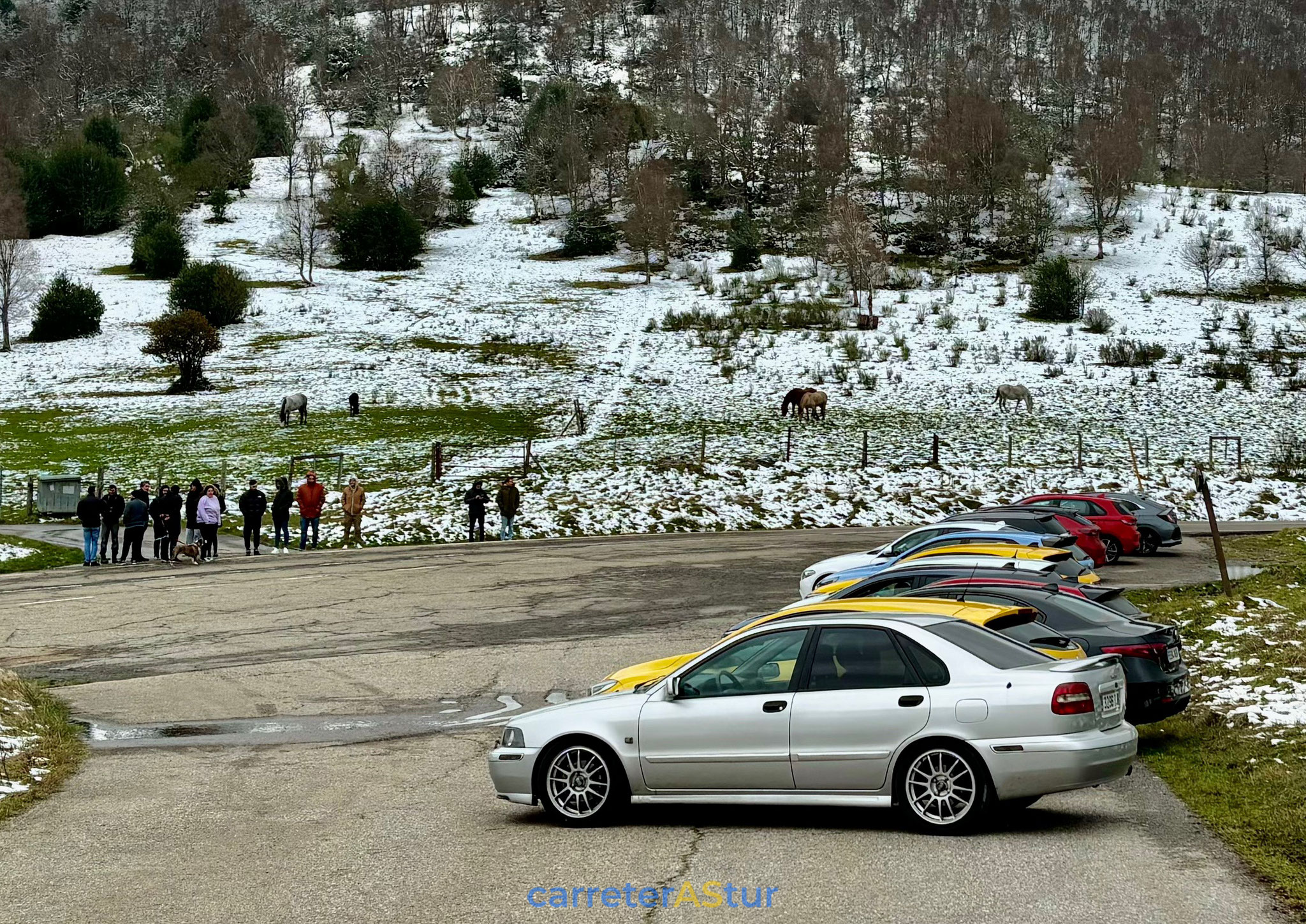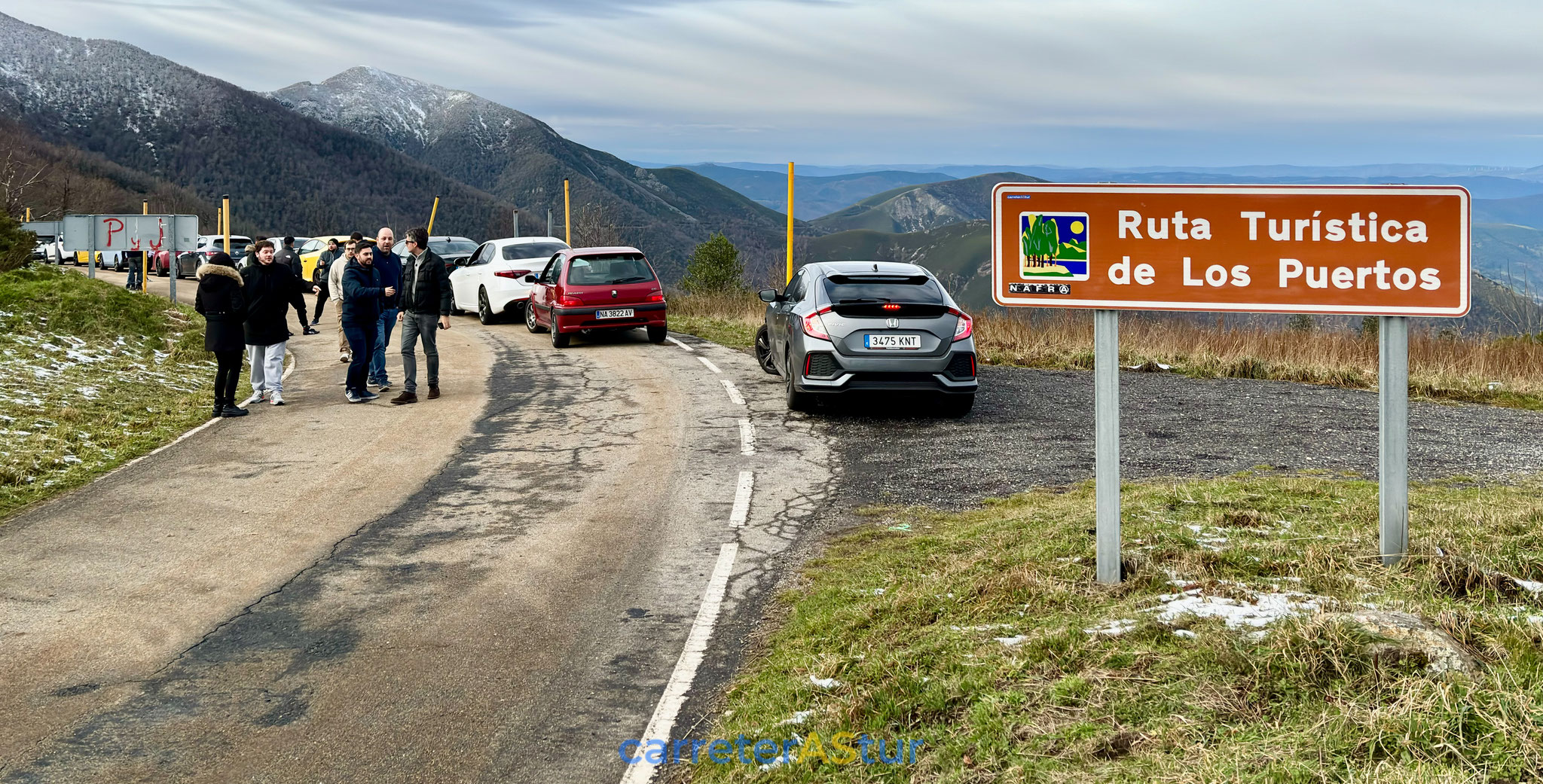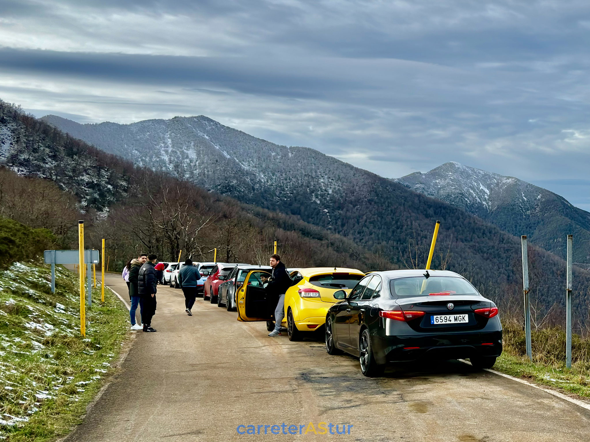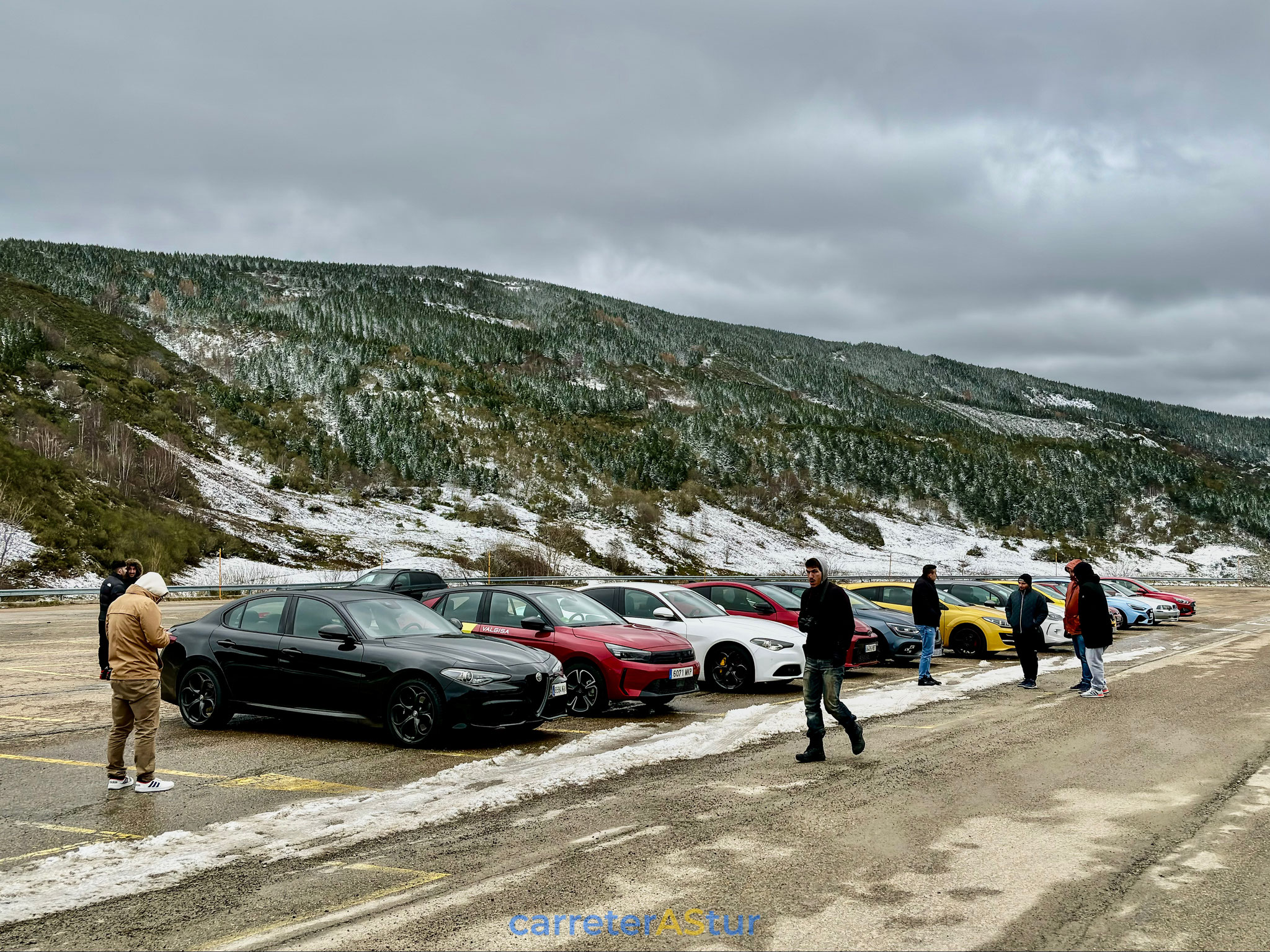 La duda estaba en si volver hacia atrás o seguir, y de seguir, ya sería pisar territorio vecino. Llega el mensaje y si, bajamos a Cabolles para volver a Asturias por Leitariegos. Parada en el aparcamiento de la estación de esquí para reagrupar de nuevo.